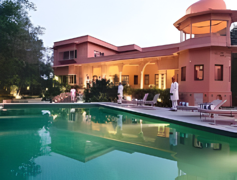 The private residence of Maharaj Karanvijay Singh ji of Jodhpur is a magnificent estate nestled in the northern quarters of Jaipur that serves as a central hub for his passion for polo. The interiors provide a warm and inviting atmosphere where guests can admire antique furniture, old family photographs, and intricate Persian carpets that showcase a regal lifestyle. Every room and suite is designed to reflect an expansive sense of space that embraces the outdoors while filling the living areas with abundant natural light and modern comforts. This unique home beautifully complements the royal heritage of Jodhpur through its diverse themes and aristocratic ambiance.